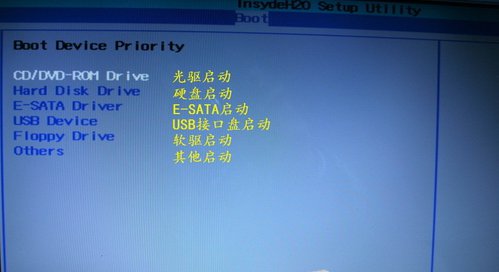 启动顺序设置:列表中会出现各种设备,有光驱启动、硬盘启动、E-SATA启动、USB接口启动、软驱启动、其他启动等,以光驱启动为例,通过键盘上的加号+和减号-来移动列表中的启动项,将光驱启动移动到最顶端,即设置成第一启动项,如图所示: